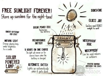 La lámpara utiliza un panel solar en la tapa para cargarse durante el día, lo que permite una iluminación nocturna ecológica.