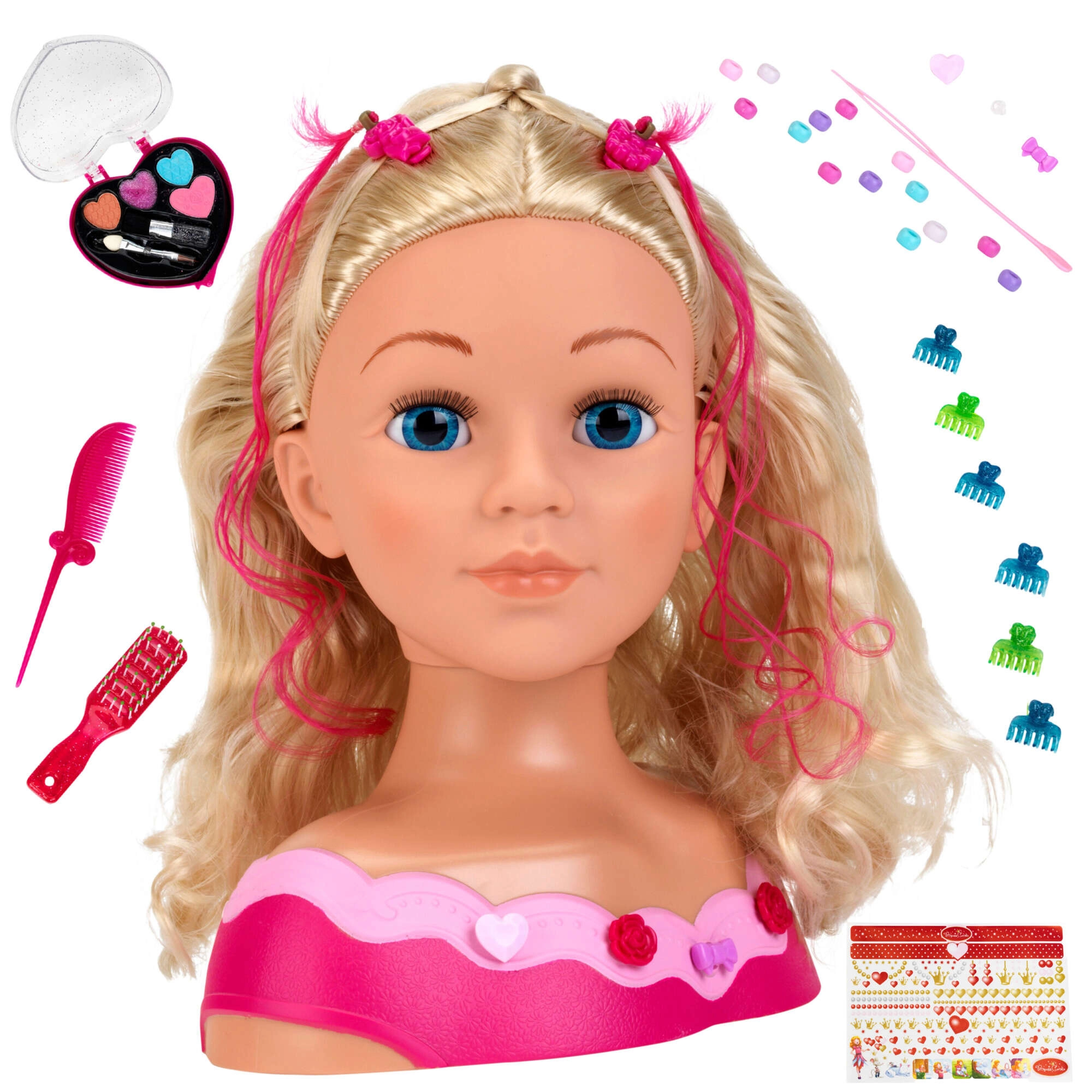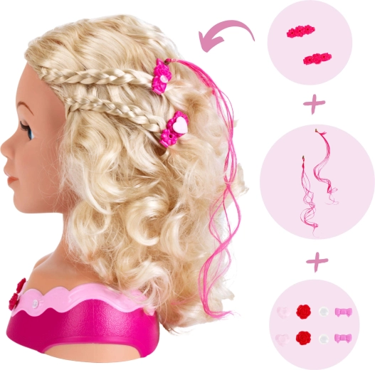 Gracias a la variada selección de accesorios, los niños pueden practicar el trenzado, la decoración con cuentas y clips de colores y experimentar con maquillajes brillantes. El juego fomenta la concentración, la paciencia y la coordinación ojo–mano, y además es una excelente idea para regalar.