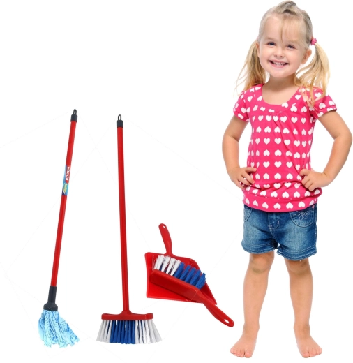 El realista juego de limpieza infantil con licencia de Vileda de la marca KLEIN encantará a los pequeños ayudantes que disfrutan imitando a los adultos. Incluye fregona, escoba, recogedor y cepillo de mano en una versión ligera con dimensiones adaptadas a los niños. Su bajo peso, fabricación resistente y diseño fiel a las herramientas de limpieza reales fomentan tanto la diversión como el aprendizaje del orden.