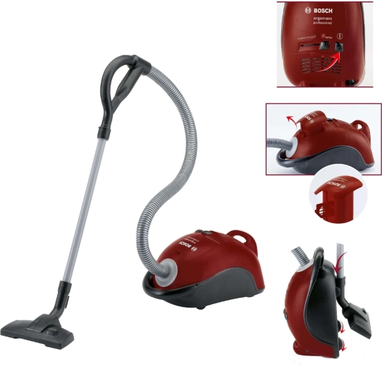 La aspiradora infantil BOSCH de Klein es una fiel réplica de una aspiradora real, diseñada para pequeños ayudantes a partir de 3 años. Ofrece efectos de sonido auténticos, un contenedor transparente y succión real del granulado incluido, para que los niños disfruten de un juego doméstico realista.