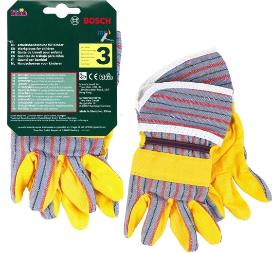 Combinan a la perfección con otros sets de la serie BOSCH mini: desde taladros y herramientas de jardinería hasta accesorios de construcción. Los guantes están destinados al juego y a disfraces, y motivan a los niños a imitar a los adultos en tareas ligeras del hogar y al aire libre.