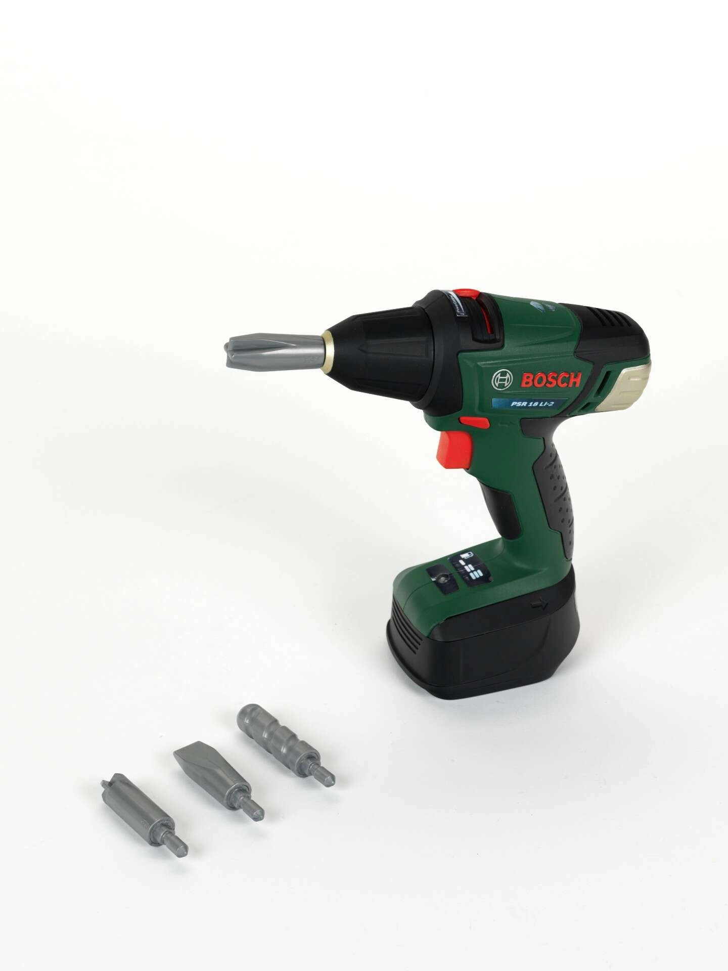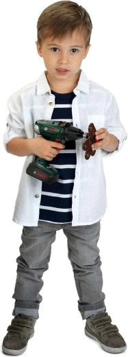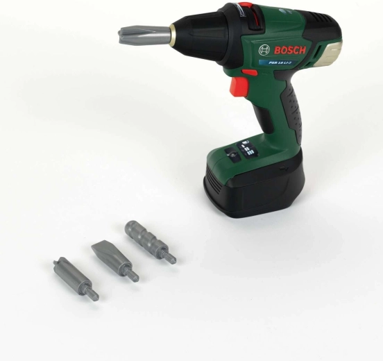 El taladro infantil a batería Bosch II de la marca Klein ofrece una imitación segura y divertida del trabajo de los adultos. Cuenta con puntas intercambiables, dos velocidades, giro a derecha/izquierda y luz LED en la punta. El mango ergonómico con agarre suave se adapta perfectamente a las manos de los niños.
