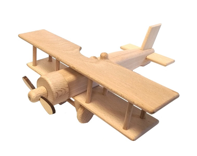El avión está únicamente encerado y pulido para resaltar la veta natural de la madera y seguir siendo respetuoso con los niños y el medio ambiente.