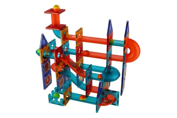 Te presentamos la pista de canicas magnética, que permite construir cualquier recorrido según tu imaginación o siguiendo las instrucciones incluidas. Las piezas son magnéticas, lo que facilita el montaje y garantiza la solidez de la estructura.
