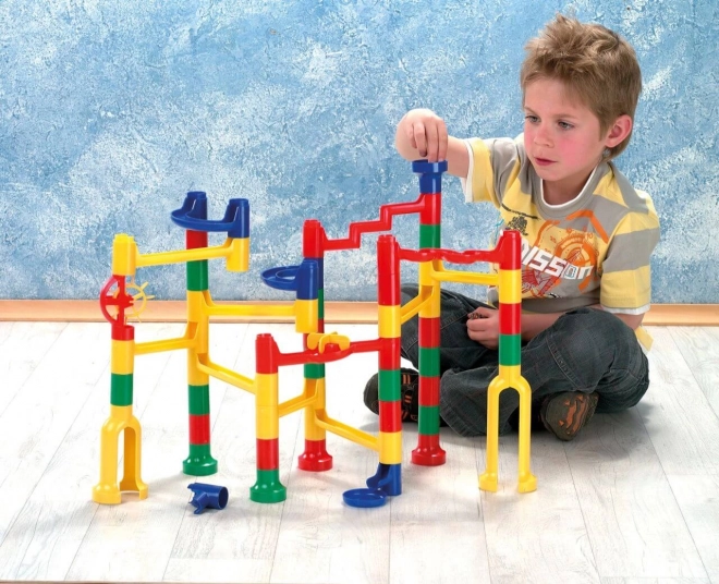 Esta pista de canicas de la marca LENA te proporcionará horas de diversión gracias a su variedad y ingenio. Es ideal para niños a partir de tres años y ofrece muchas posibilidades para montar pistas según su propia imaginación.