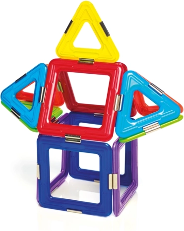 El set incluye un total de 6 cuadrados magnéticos, 8 triángulos y 1 spinner, lo que ofrece un amplio espacio para la experimentación. Este juego no solo es divertido, sino también educativo, y desarrolla habilidades infantiles como la imaginación espacial, la coordinación, la concentración y la creatividad.