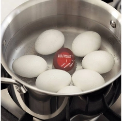 Este exclusivo temporizador para huevos le permite cocer los huevos exactamente con la consistencia que desea. Simplemente colóquelo en la olla junto con los huevos y observe los cambios de color en la escala especial: