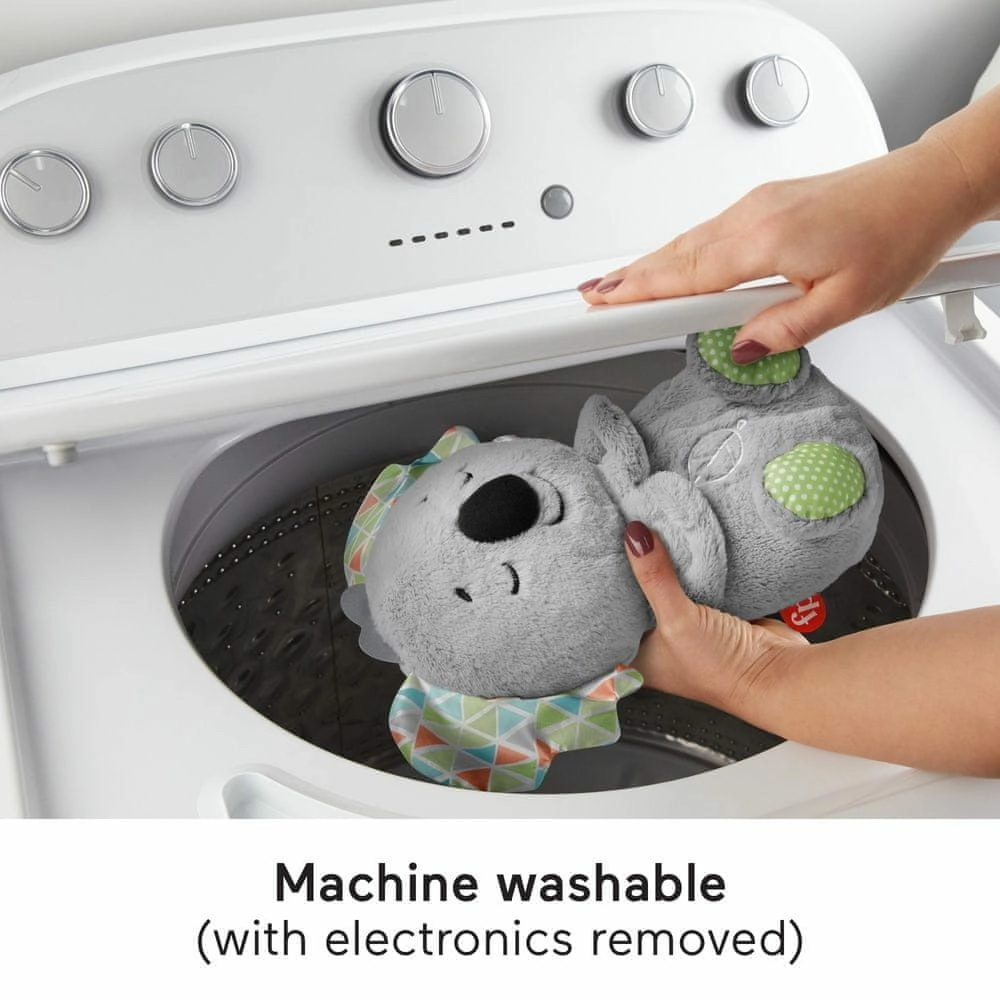 La adorable koala de peluche de Fisher-Price ayuda a los bebés a dormir gracias al ritmo de respiración realista, la música relajante y los sonidos de la naturaleza, y una suave luz multicolor en la barriguita. El juguete, súper suave, es fácil de mantener: tras extraer la electrónica es lavable a máquina y sus texturas variadas para el desarrollo sensorial atraen a las manos más pequeñas.
