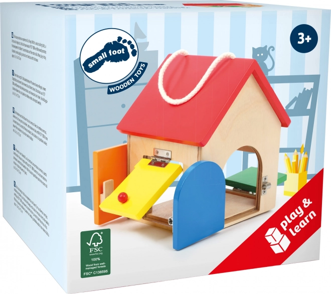 Esta casita de madera de alta calidad de small foot está llena de elementos interactivos: cada puertecita tiene un tipo de cierre distinto, de modo que los niños entrenan de forma divertida la destreza de los dedos, el pensamiento lógico y la paciencia. Gracias a su construcción robusta y a sus colores llamativos, es ideal para jugar en casa o durante los viajes.