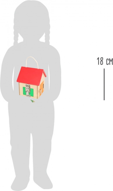 Gracias a sus pequeñas dimensiones y al asa en el techo, los niños pueden llevarse la casita a cualquier parte: de visita, en el coche o de vacaciones.