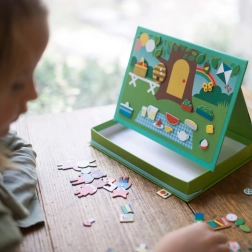 Crea tus propias historias con un divertido set magnético que ofrece dos fondos y más de 72 piezas magnéticas. La caja portátil tipo caballete con estructura resistente y goma elástica para una recogida rápida garantiza un uso fácil en casa y de viaje. El juguete fomenta la creatividad, la motricidad fina y el juego libre, está fabricado con materiales reciclados impresos con tintas vegetales y cumple todas las normas de seguridad.
