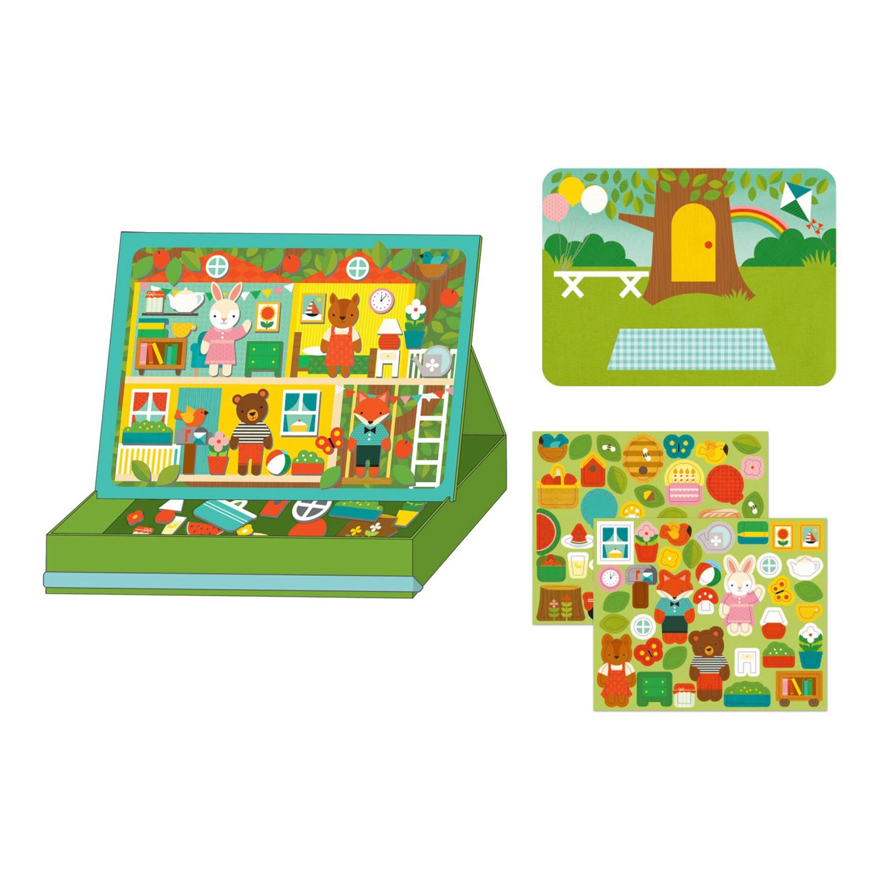 - 2 fondos magnéticos para un juego versátil: casa y picnic en el parque