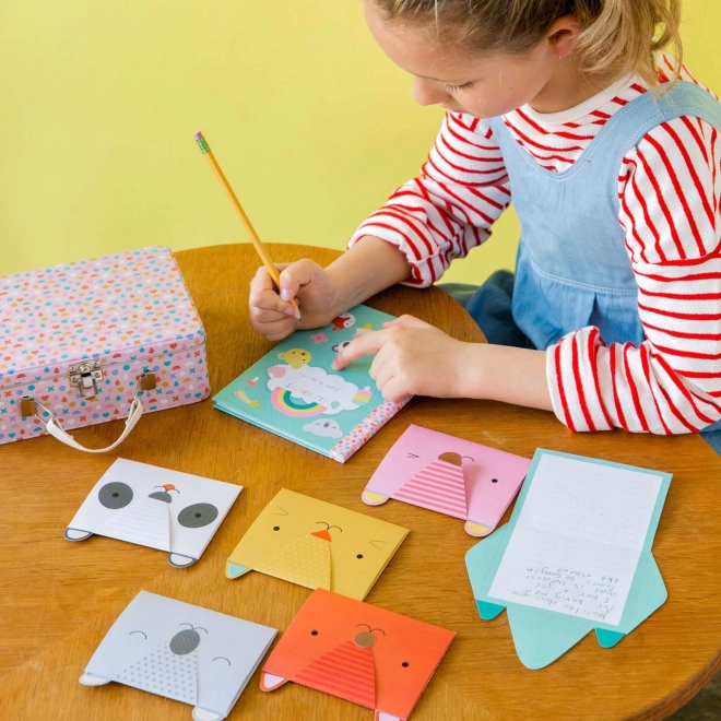 Este adorable set de correspondencia con animalitos fomenta la creatividad, la motricidad fina y el gusto por escribir. Los niños pueden enviar mensajes únicos a sus amigos, decorar el diario con pegatinas y crear sus propias historias. Todo está ordenado en un resistente maletín metálico que se cierra de forma segura con cerradura.