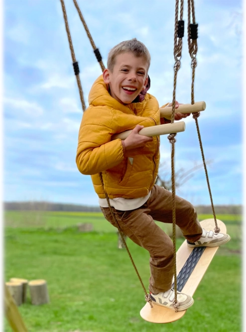 Este columpio poco convencional combina diversión y desarrollo motor. La tabla de contrachapado resistente con bordes curvados y las asas ajustables de madera maciza permiten a los niños entrenar con seguridad la equilibrio, coordinación y estabilidad. Gracias a la superficie antideslizante, balancearse de pie es más seguro y cómodo.