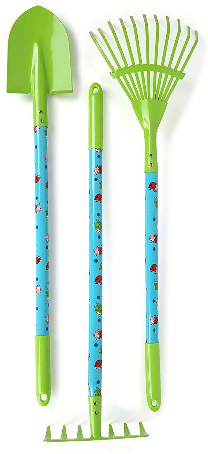 Las herramientas largas miden aproximadamente 70 cm para rastrillar y cavar cómodamente, mientras que las herramientas manuales cortas miden aprox. 15–20 cm. Gracias a los mangos ergonómicos y al tamaño infantil, las herramientas se sujetan bien y fomentan buenos hábitos de trabajo en el jardín. El set motiva a los niños al movimiento activo, al aprendizaje de la responsabilidad y a momentos compartidos con los padres.