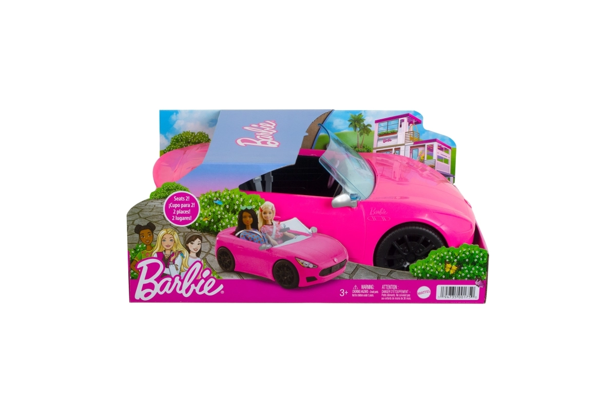 El cabrio de Barbie ofrece detalles realistas en el clásico estilo de Barbie, como la matrícula personalizada y el emblema de Barbie en el capó. Sienta a dos muñecas Barbie (se venden por separado) en los asientos y empuja el vehículo: gracias a las ruedas giratorias, partirás hacia la aventura. Muñecas se venden por separado. Los colores y las decoraciones pueden variar.