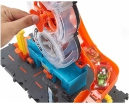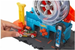 Introduce a tus hijos en el mundo de Hot Wheels, lleno de acción y creatividad. Hot Wheels Ciudad Super Twist Servicio de Neumáticos trae mucha diversión con detalles realistas, como un exhibidor giratorio de neumáticos y una llave que impulsa los coches hacia arriba por la estructura hacia nuevas aventuras.