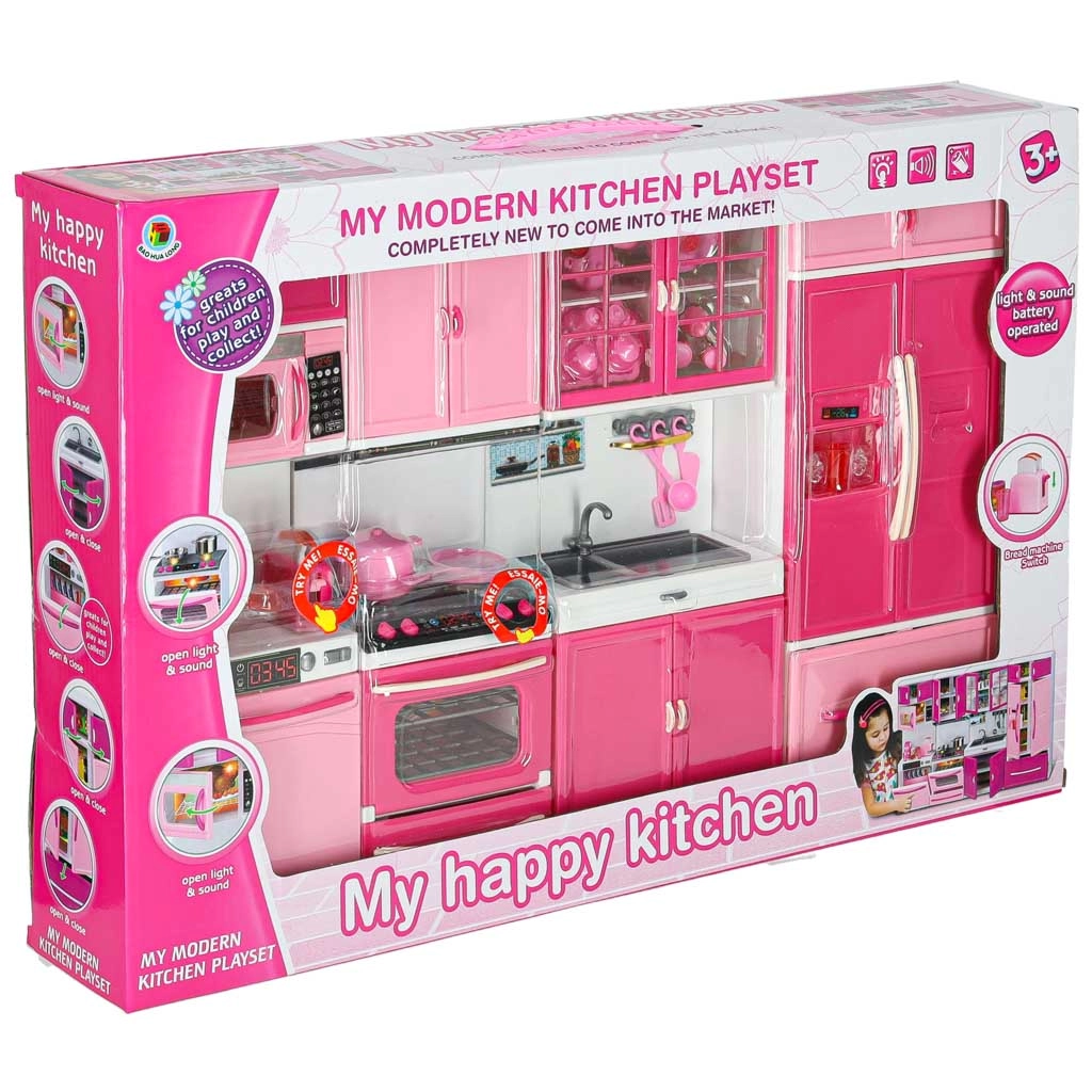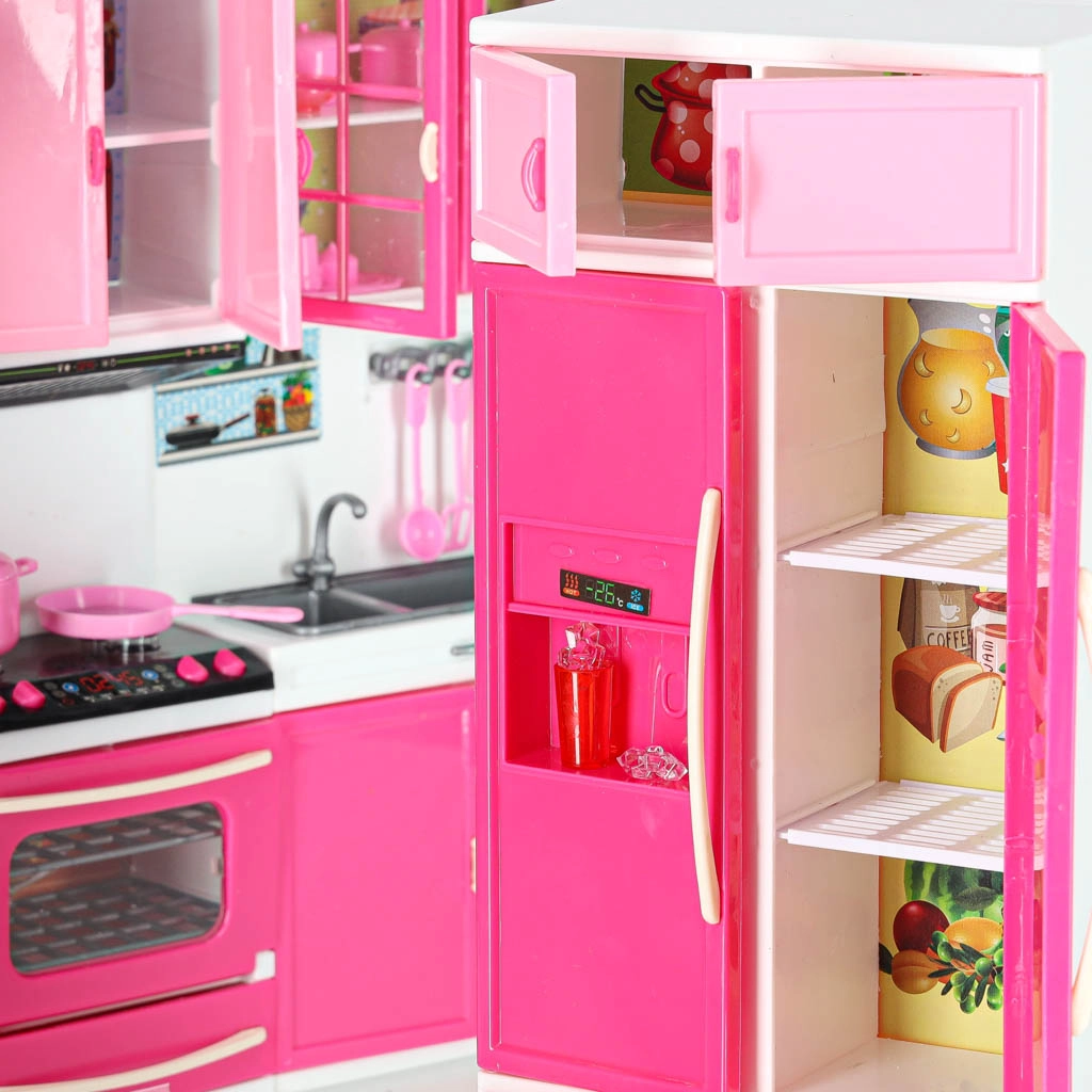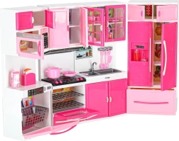 Esta moderna cocina para muñecas introduce a los niños en un mundo de fantasía e imitación de las actividades cotidianas. Cuatro segmentos conectados permiten montar una cocina completa con todos los elementos esenciales: desde la placa con horno hasta la nevera y el fregadero. Los quemadores con iluminación LED y los sonidos aportan un toque de realismo al juego de cocinar.