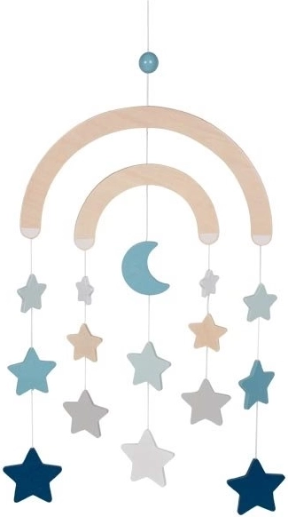 Enriquece la habitación infantil con un hermoso accesorio: un carrusel colgante con motivo de estrellitas. Estas formas alegres y materiales naturales crean un ambiente acogedor y relajante.