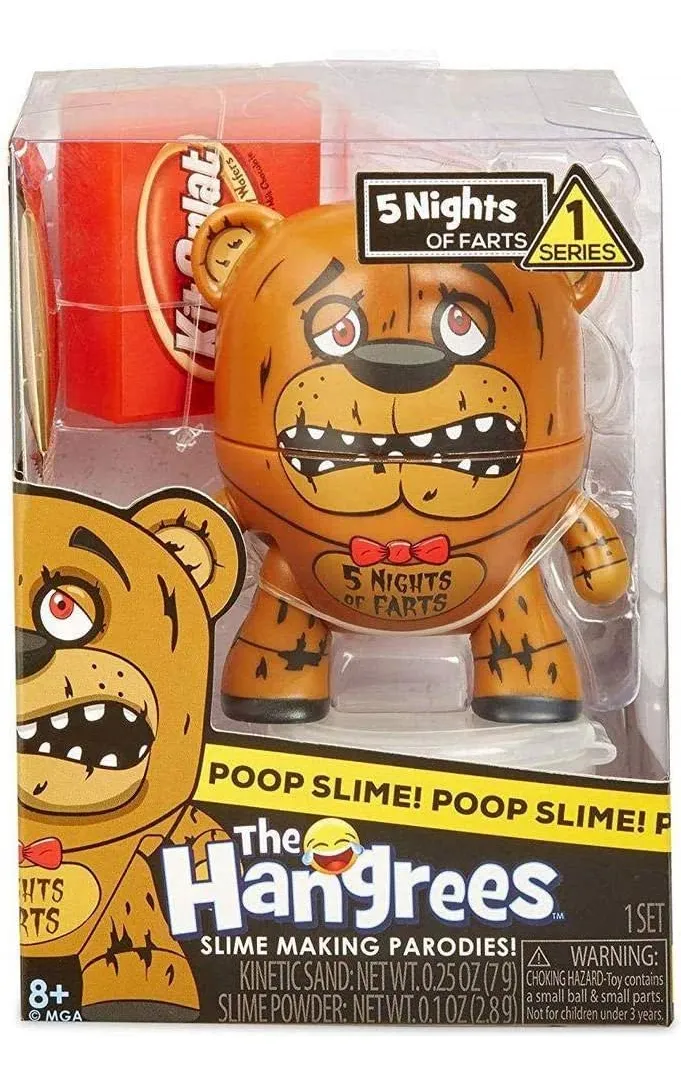 Descubre la divertida figura coleccionable Hangrees Tragaldabas de la serie 1, que encantará a niños y a fans de las parodias. Solo hay que alimentarlo y agitar bien: ¡aparecerá un slime de colores! En el paquete encontrarás un mini inodoro para guardar el slime y accesorios que parodian marcas populares. Hay 6 Tragaldabas diferentes disponibles para aún más diversión y colección.