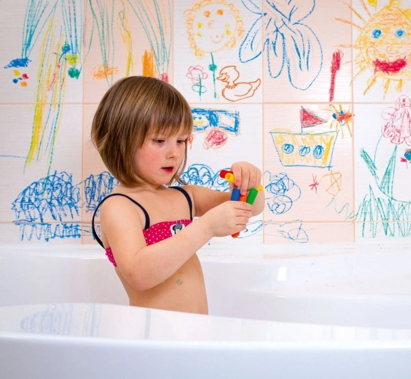 Descubre infinitas posibilidades de creatividad con los crayones para bañera. Los niños pueden dibujar directamente en la bañera o los azulejos y crear obras de arte increíbles durante el baño. Las mamás pueden estar tranquilas: todos los dibujos se limpian fácilmente y los crayones son totalmente seguros.
