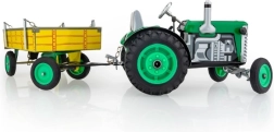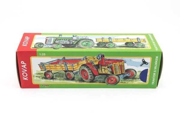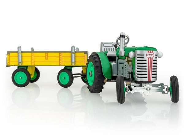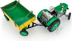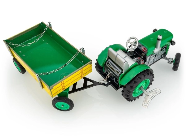 Este modelo único de tractor está impulsado por un mecanismo de resorte con cuerda y llave, lo que aporta un toque de autenticidad al juego. La caja de cambios funcional con tres velocidades hacia adelante y una marcha atrás permite a los niños manipular el modelo de forma realista. Pueden conducir mediante el volante y usar el freno de mano para detenerlo. Gracias a la escala 1:25, este modelo reproduce con precisión los detalles de un tractor real, lo que lo convierte no solo en un gran juguete, sino también en una pieza de colección.