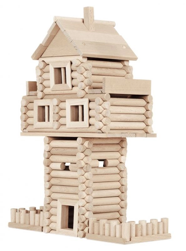 La construcción Vario Massive ofrece calidad auténtica en haya maciza y la atemporal versatilidad de las clásicas piezas de “cabaña de troncos”. Los cilindros y láminas lisos encajan con precisión, de modo que niños y adultos pueden montar fácilmente casitas, torres, puentes, cercados o aldeas completas de troncos. Las piezas se pueden montar y desmontar repetidamente, lo que fomenta la experimentación y escenarios de juego infinitos.