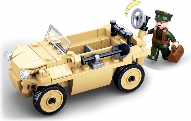 Sumérgete en el mundo de la diversión creativa con este detallado set de Sluban, que presenta réplicas de vehículos militares alemanes de la Segunda Guerra Mundial. El set incluye 106 piezas y una figura original con partes giratorias y articuladas, que permiten jugar con otros accesorios.
