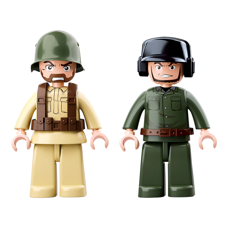 Dos figuras de soldados con extremidades móviles, lo que añade interactividad al juego.
