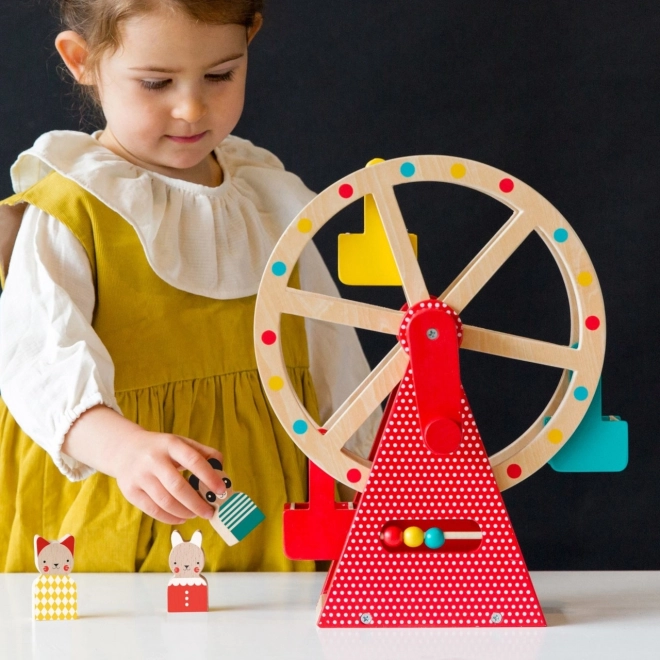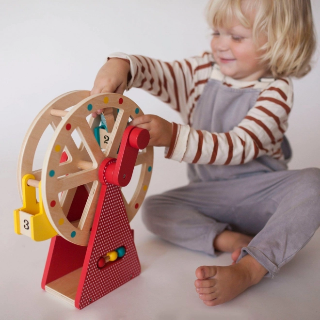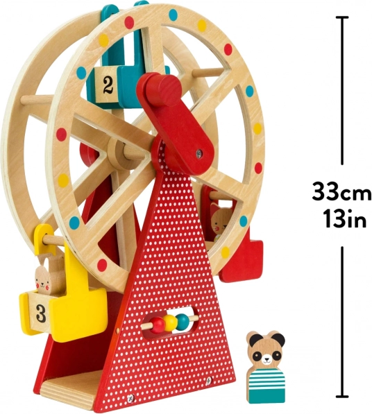 Disfruta de horas de diversión con la bellamente diseñada noria de madera de PETIT COLLAGE. Gira la manivela y observa cómo la gran rueda da vueltas, llevando a tres adorables amigos animales de madera de haya mientras desarrolla la motricidad fina y la coordinación. Su construcción robusta está pintada con pinturas al agua no tóxicas y complementa a la perfección cualquier habitación infantil.