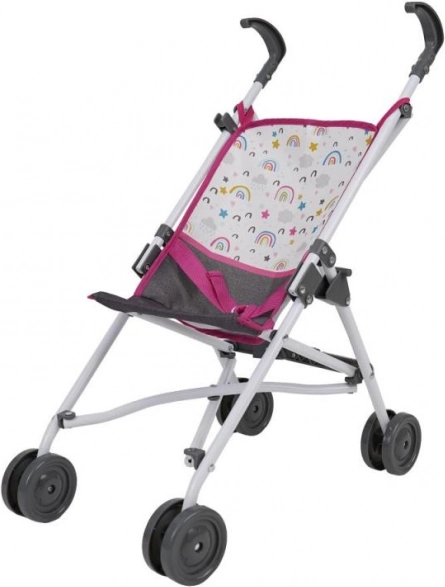 Un cochecito para muñecas tipo paraguas, alegre y práctico, en diseño arcoíris, encantará a cualquier pequeña mamá. Es adecuado para muñecas de aprox. 46 cm, tiene una altura del asa de aprox. 54 cm y gracias a su estructura plegable se transporta y guarda fácilmente. Ideal para niños a partir de 3 años.