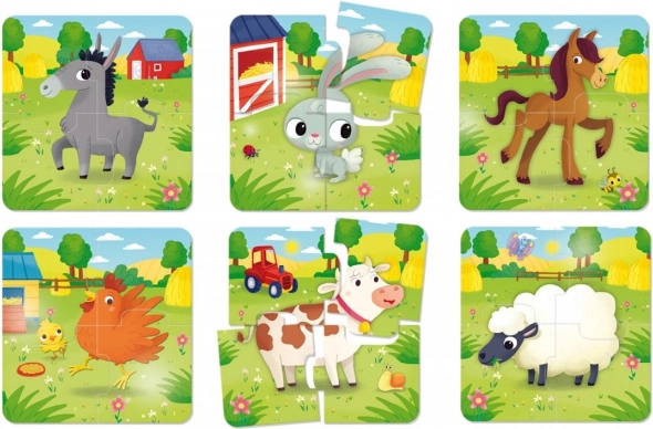 - 6 imágenes del entorno de la granja compuestas por 24 piezas grandes, ideales para los primeros ensamblajes.