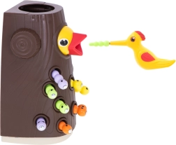 Pon a prueba la precisión con el pico magnético, que ayuda a atrapar los coloridos gusanitos del árbol.