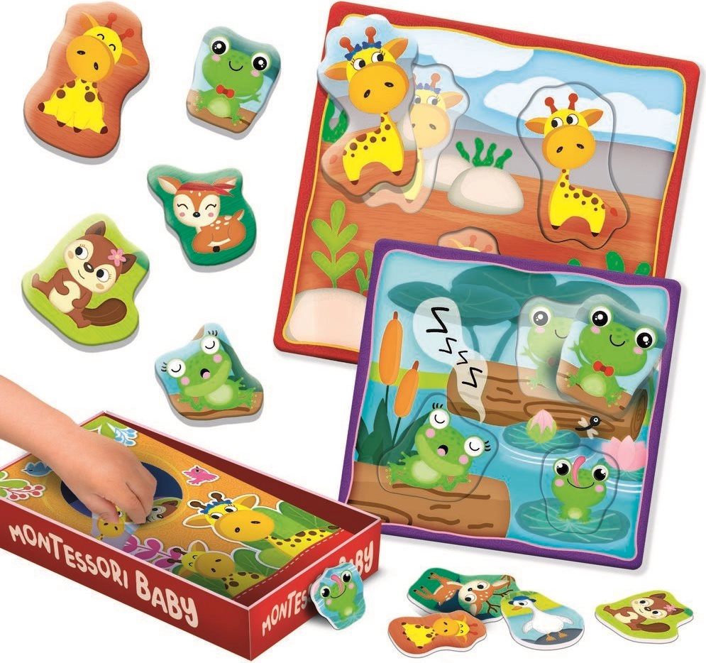Descubra un set didáctico lúdico en el que los niños emparejan las crías con su mamá y su papá, conocen a los animales y su entorno natural y, al mismo tiempo, entrenan la paciencia, la atención y la motricidad fina. El set está diseñado para los más pequeños: las sencillas piezas de contorno se agarran bien y se encajan con facilidad.