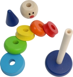 Gracias a los diferentes tamaños de los anillos, los niños entrenan la motricidad fina, el pensamiento lógico y la paciencia. Los colores vivos apoyan la percepción visual y el aprendizaje de los colores y el orden. La fabricación en madera garantiza la resistencia y un juego seguro.