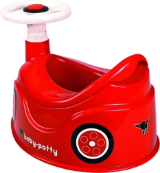 El aspecto realista del coche rojo con volante y “ruedas” convierte el aprendizaje del orinal en un juego. El niño asociará sentarse en el orinal con alegría y curiosidad.