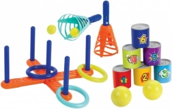 Disfruta de la diversión con el Juego 3 en 1, que incluye tres juegos populares para interior y exterior: atrapa la pelota, anillas a la cruz y derribo de latas. Fabricado en plásticos duraderos en Francia.