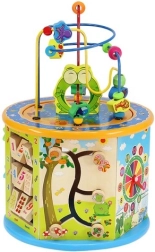 Este cubo interactivo de madera combina aprendizaje y diversión en uno. El niño practicará el conteo, el reconocimiento de colores y formas, la orientación temporal con el reloj y la coordinación ojo–mano gracias al laberinto de cuentas y a los elementos móviles. Sus caras alegremente ilustradas y la sólida fabricación en madera fomentan la creatividad y un juego seguro.