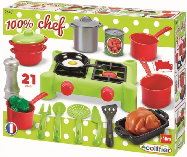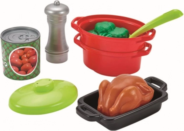 Con este juego completo de utensilios, los niños pueden disfrutar de interminables horas de cocina. El set incluye ollas con tapas, cacerolas, sartén, bandeja para hornear y diversos alimentos que aportan realismo.