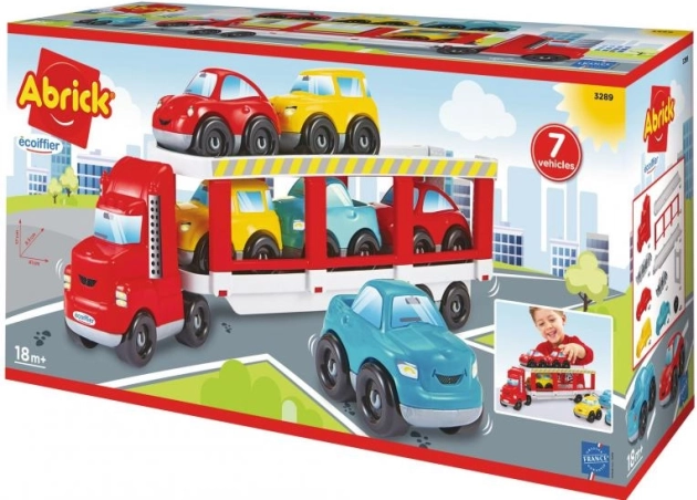 Haz felices a tus hijos con este transportador Abrick, ideal para jugar con cochecitos. Su rampa abatible garantiza una carga y descarga sin complicaciones. Este modelo es robusto y proporcionará horas de diversión.
