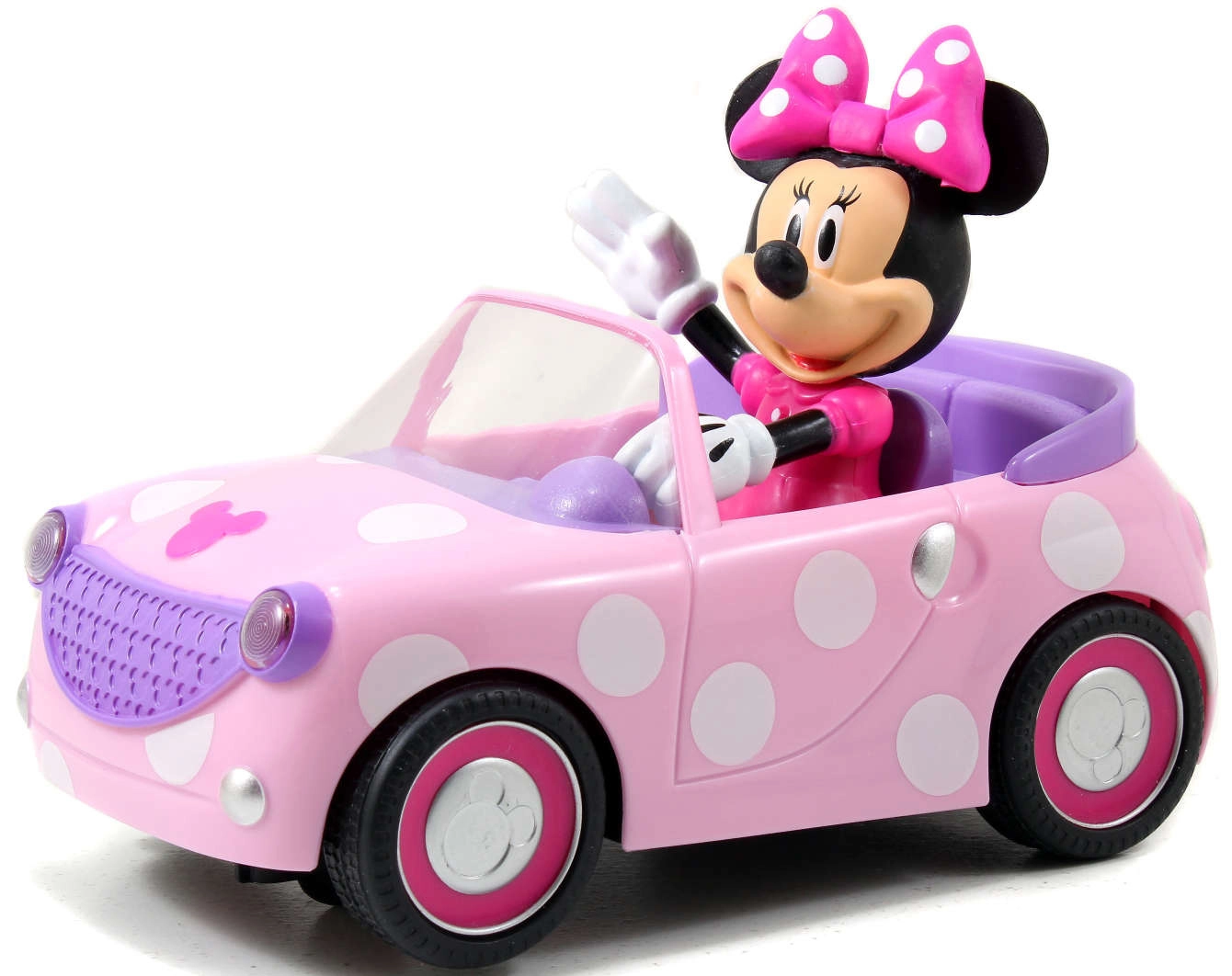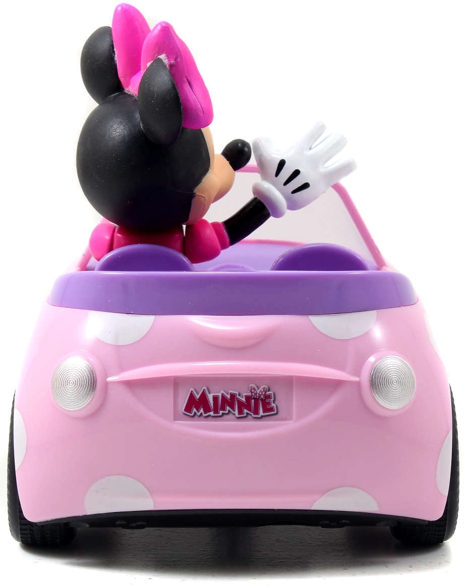 El cabrio rosa con lunares y la figura fija de MINNIE MOUSE estimula la imaginación y el juego temático.