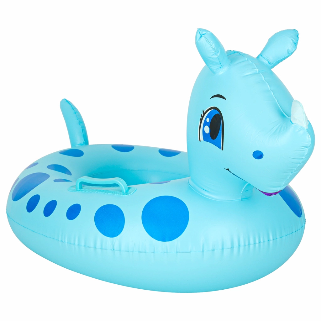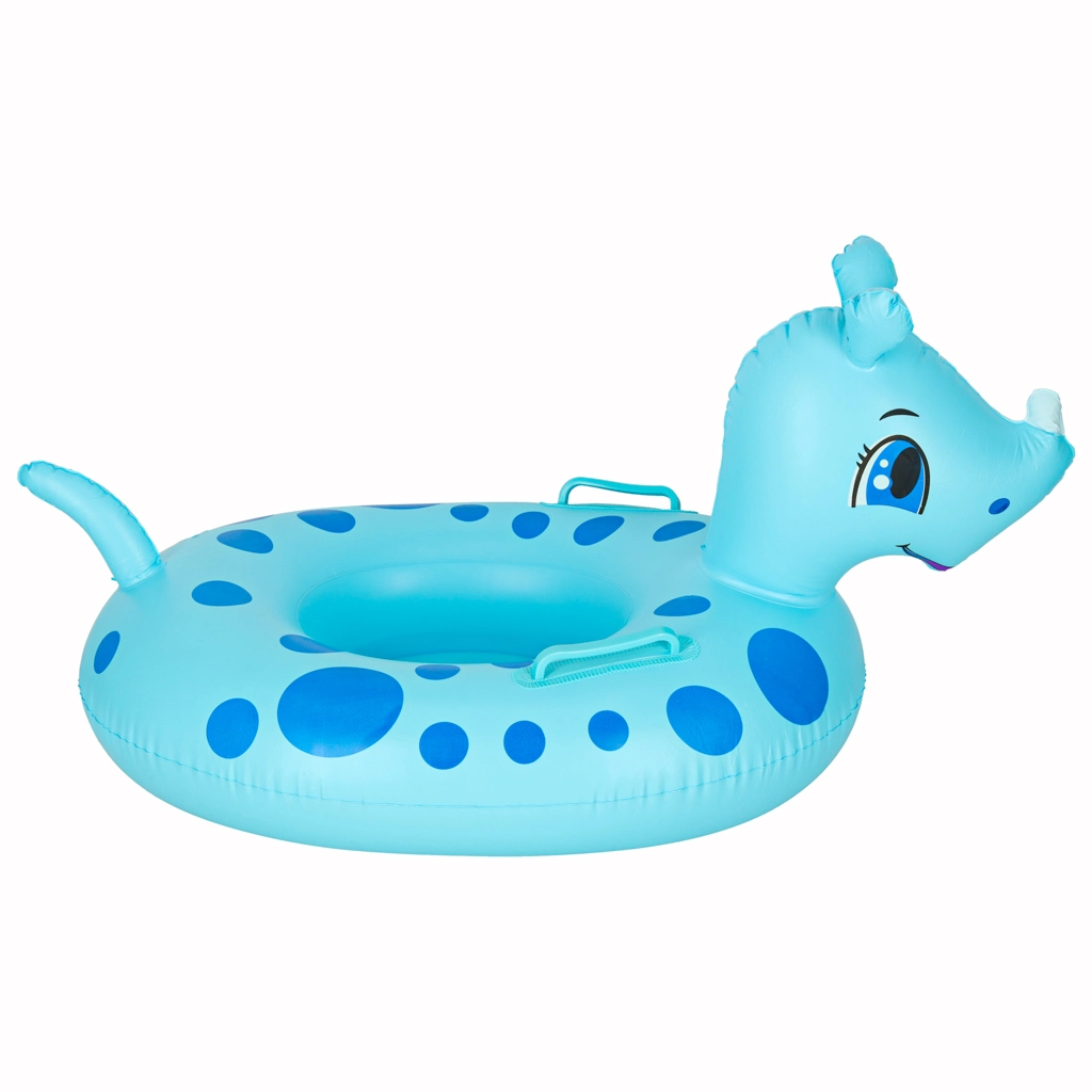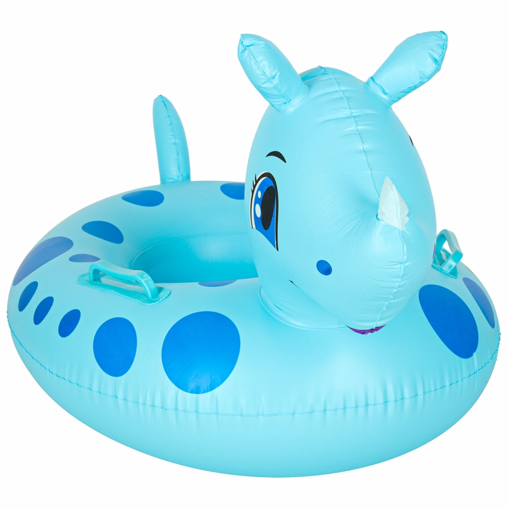 Adorable flotador infantil con forma de rinoceronte y asiento estable que garantiza un primer contacto con el agua seguro y cómodo. PVC resistente, asas prácticas y diseño divertido que fomentan la alegría del baño en la piscina y en el agua. Apto para niños de 1–3 años, máx. 15 kg.