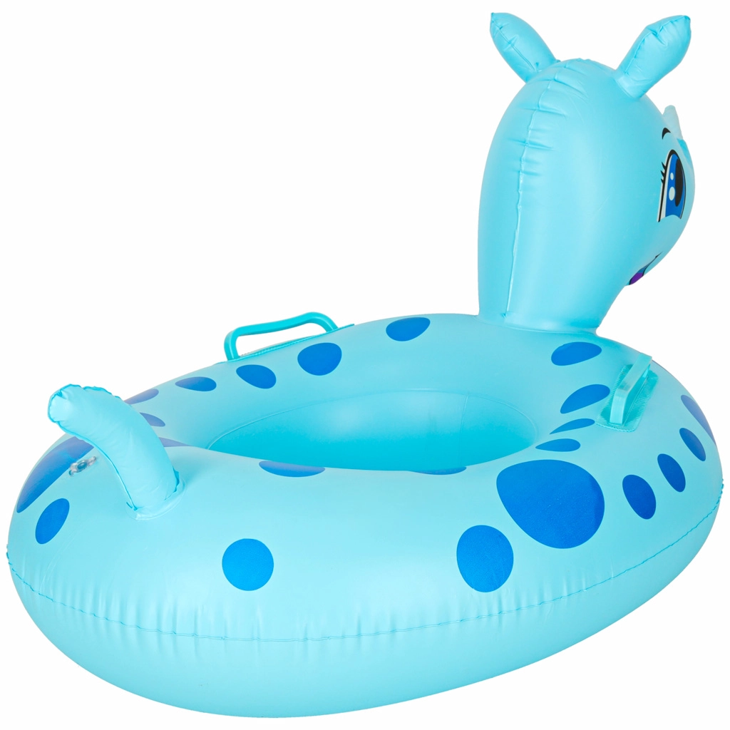 Este flotador inflable para los más pequeños combina diversión y seguridad. El asiento con aberturas para las piernas mantiene al niño estable, mientras que el par de asas aporta confianza durante el juego en el agua. El material de PVC de alta calidad garantiza resistencia y larga duración.