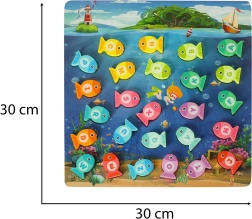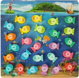 Sumérgete en un mundo submarino mágico y disfruta de diversión sin fin con el juego de pesca de peces de madera. Este juego educativo ayuda a los niños a aprender letras, colores y a contar. Los peces marcados con letras deben colocarse en los huecos correctos y también pueden pescarse con la caña magnética. Todo el proceso ayuda a desarrollar la concentración y la paciencia.