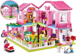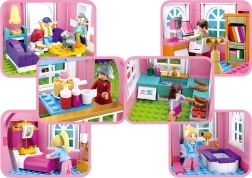 Construye tu propia villa de dos pisos con seis habitaciones y terraza de la serie Sluban Girl's Dream. El set ofrece 896 piezas, 7 figuras y es compatible con LEGO, COBI y Mega Bloks. Fabricado en plástico ABS resistente y no tóxico, con dificultad media e instrucciones detalladas. Ideal para el juego creativo y el desarrollo de la imaginación.