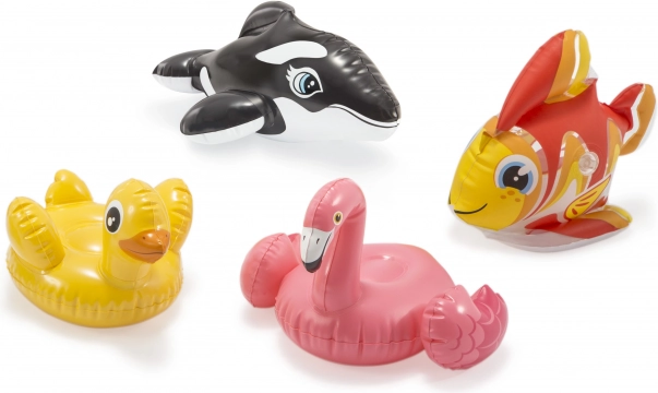 Elige entre formas icónicas: flamenco rosa, patito amarillo, juguetona orca/ballena o pez colorido. Cada motivo estimula la imaginación infantil e invita a jugar en el agua.