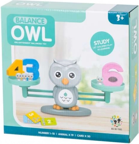 En la caja encontrarás la balanza con búho, 19 pequeños búhos, 10 dígitos de plástico y 30 tarjetas con ejercicios. Las diversas formas de juego mantienen la atención de los niños y fomentan la creatividad y el descubrimiento autónomo.