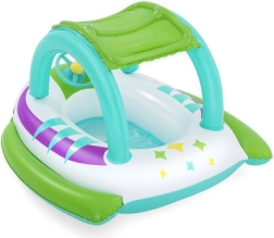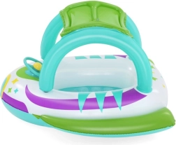 La divertida barca inflable BESTWAY Space Splash para niños a partir de 3 años ofrece juego seguro en el agua, toldo desmontable con protección UV, suelo inflable con ventanilla peek‑a‑boo y volante con claxon. Su diseño “espacial” y las asas cómodas garantizan horas de diversión en la piscina, el lago o el mar.