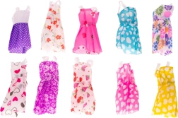 El set incluye vestidos en diferentes colores y estampados, como lunares, corazones y flores, ideales para la creatividad a la hora de vestir a las muñecas.
