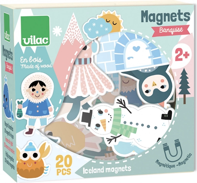 Juego de veinte imanes de madera con ilustraciones de Michelle Carlslund que te llevará al mundo del invierno y el norte. Estos imanes sirven como excelente elemento decorativo para tu habitación o tu nevera y están fabricados de forma ecológica y respetuosa con el medio ambiente.